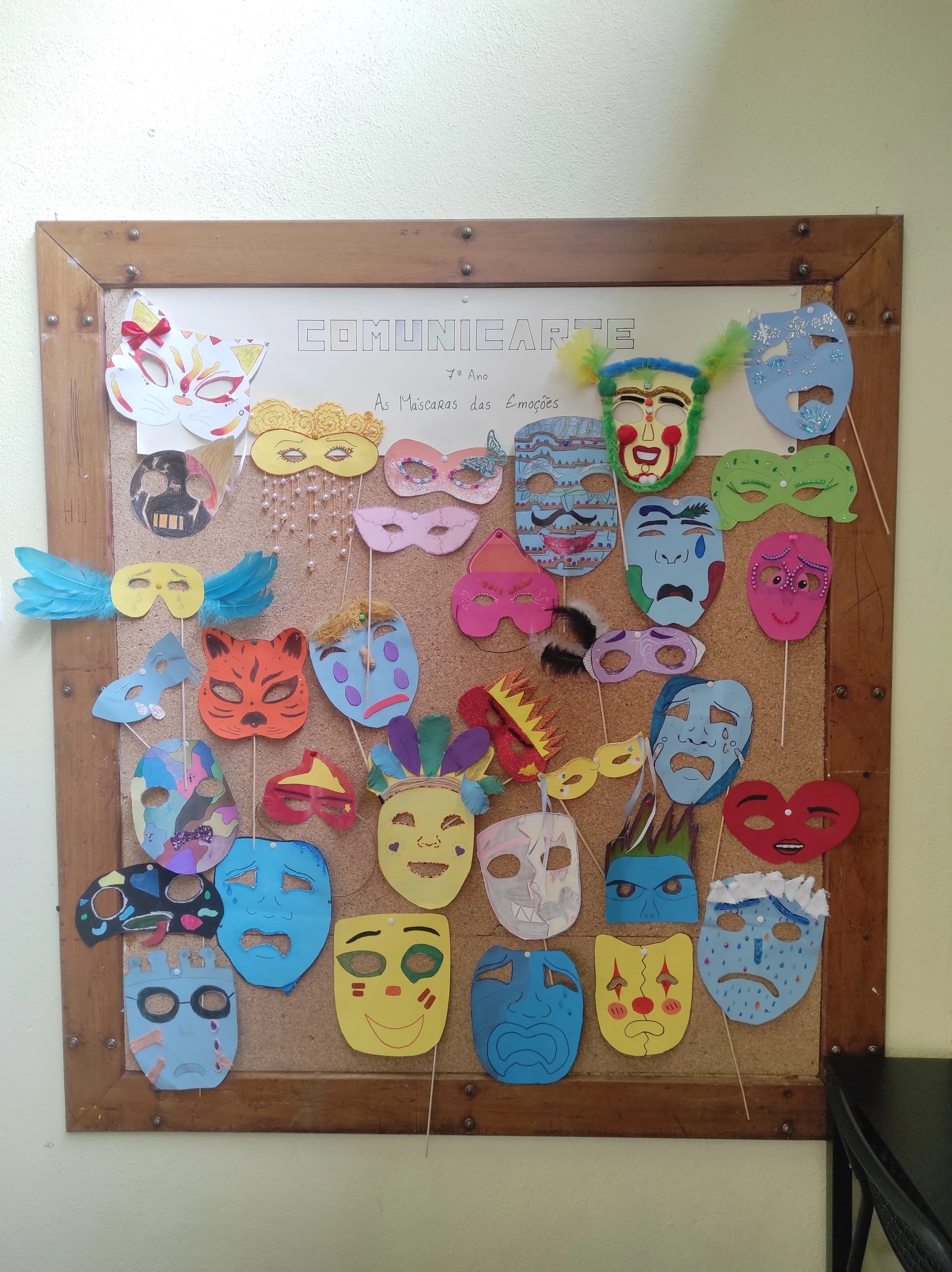 Exposição as máscaras realizadas na disciplina de Comunicarte, de 7º Ano.